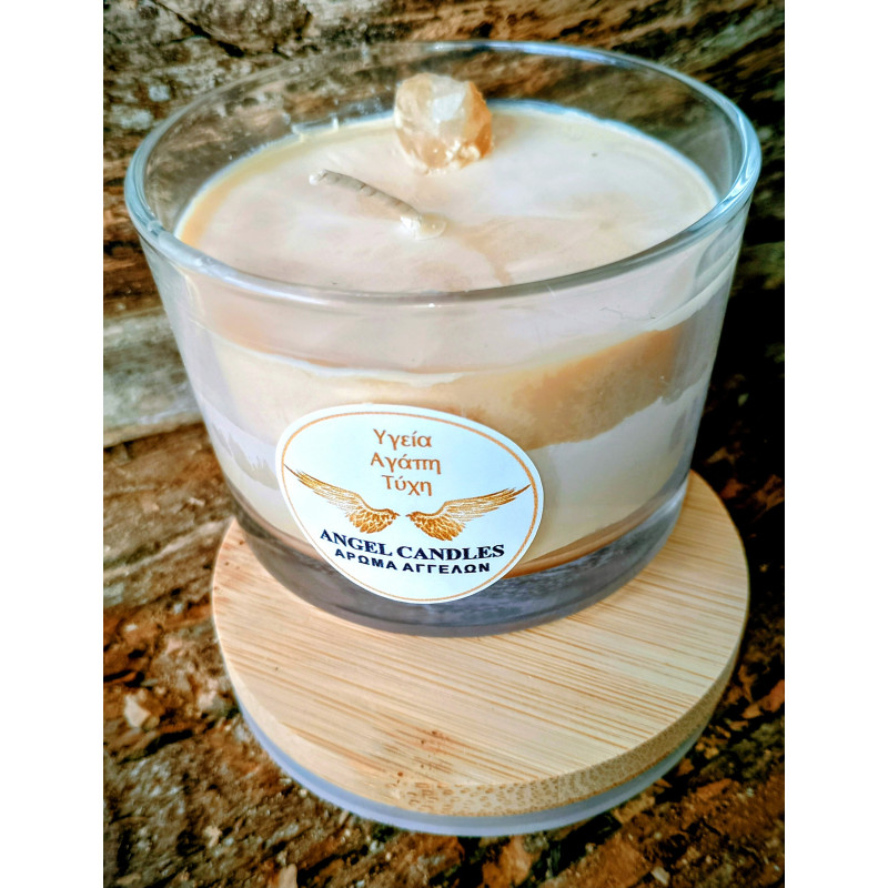 Αρωματικό κερί από φυτική σόγια σε ποτήρι με ξύλινο καπάκι σκέτο ή με ενεργιακή πέτρα